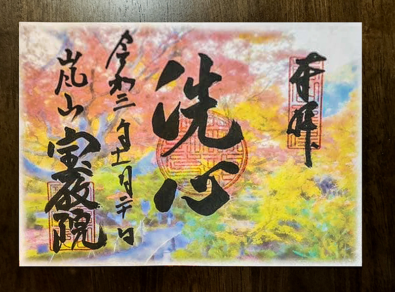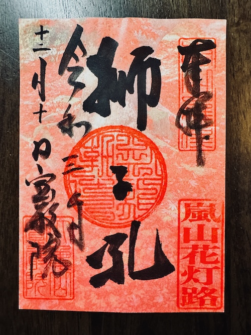 他の御朱印と唯一、一線を画すのが、右下に「嵐山花灯路」と陰刻された印判が、ヤバぃよ素敵に押印されているところ。