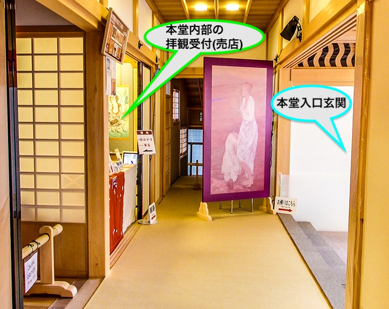 ↑拝観受付の右側の入口をくぐると左側に売店がある。(拝観受付と売店は一体=同じ建物)