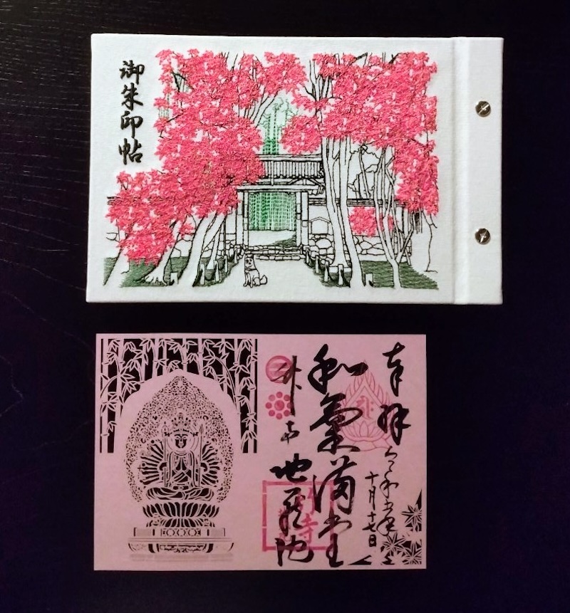 この御朱印は地蔵院で紅葉時期に頒布される紅葉時季限定セットにて頒布される本尊の特別切り絵御朱印と‥あ、なっちゃぅ。