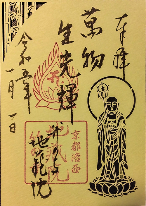 当院の本尊たる地蔵菩薩立像が、金色の切り絵で描かれた御朱印。