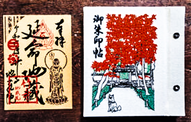 御朱印のデザイン的構図は上記とまったく同じで、中央に「延命地蔵」と素敵に墨書きされ、右下に地蔵菩薩立像が切り絵で描かれる💘