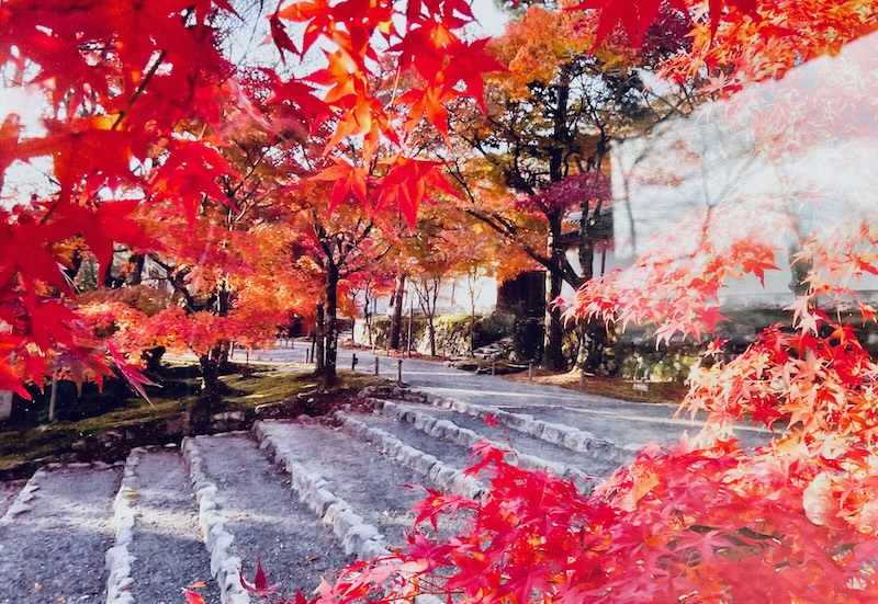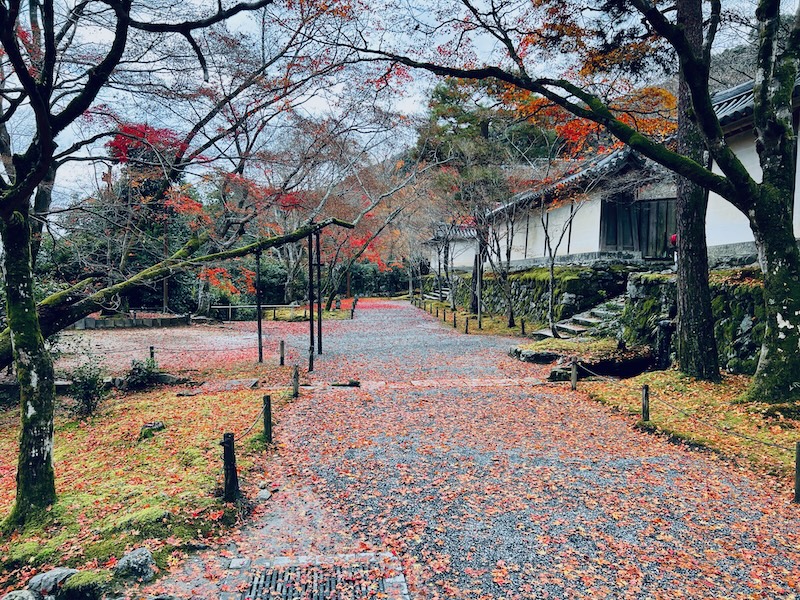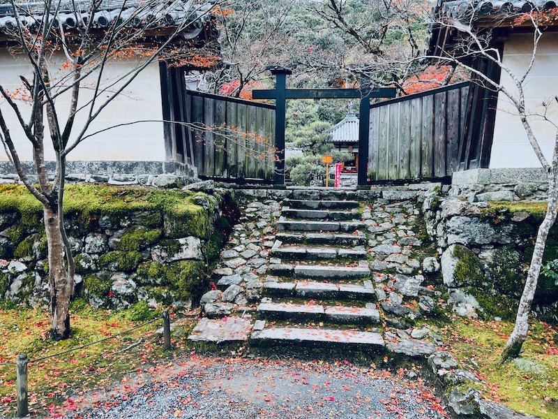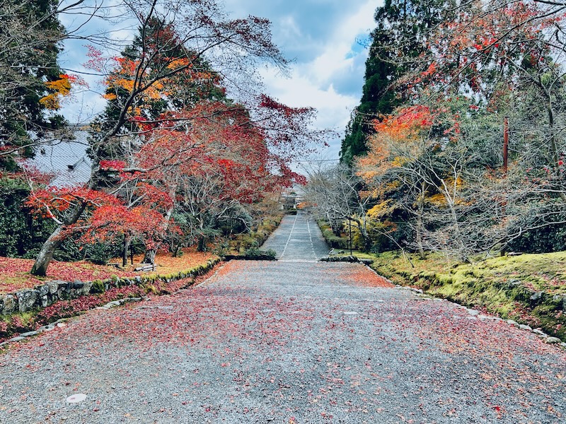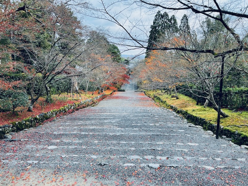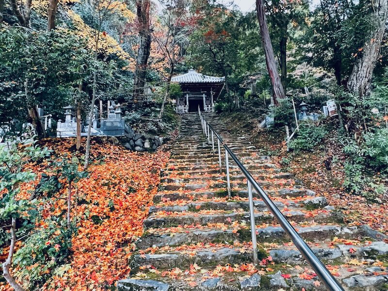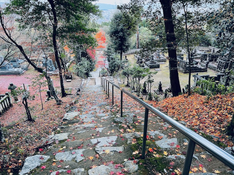 湛空廟(伝・法然上人の御廟)と手前石段が魅せる紅葉筵